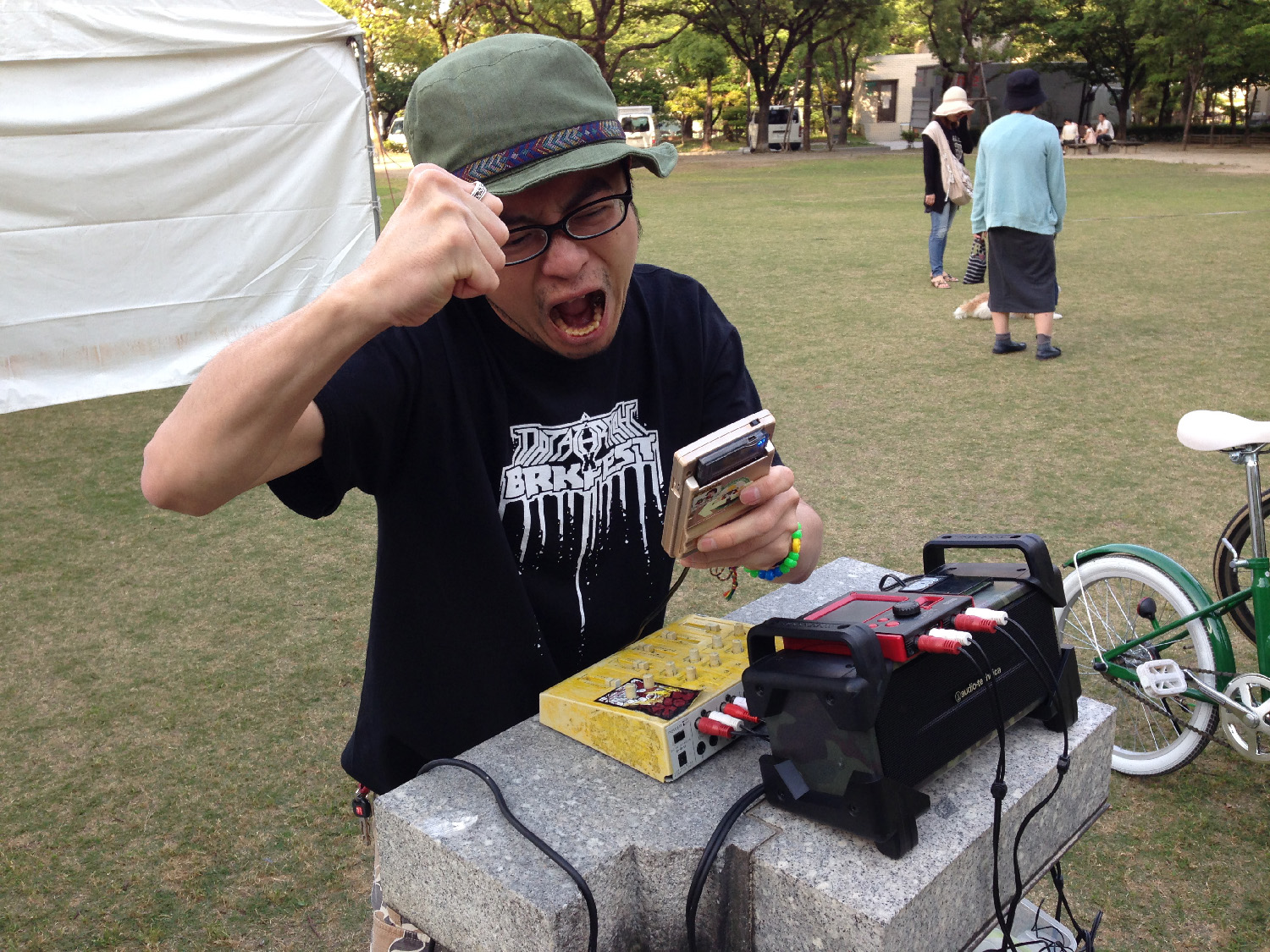 これも前の記事で書きましたが、きっかけはテクノ部の先輩がやる予定だったものを、自分の方で電池で動くPAスピーカーの環境を作ってみたら実現できたので、一緒にやってくれそうな友人にゲームボーイで曲が作れるソフトを布教して巻き込んで……という感じですね。