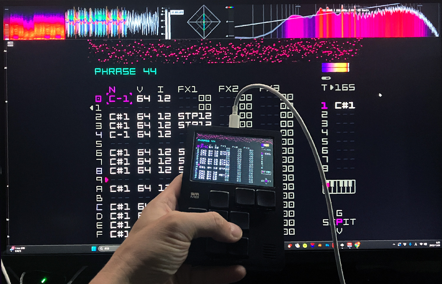 気に入っているポイントとしては、もともと似たような作曲ソフトであるLSDjを使っていたため扱いに慣れていることと、前述の操作性がとても良い点です。あと、PCのディスプレイに画面を映せるので、大きな画面でM8本体をコントローラーのように扱える点も気に入っています。