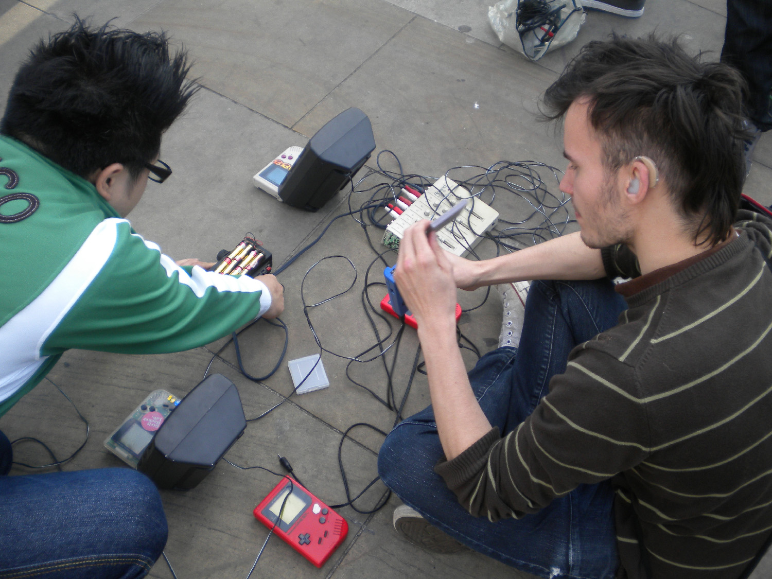 通行人からすると、普段ギターで弾き語りしている人たちがいる場所で、ゲームボーイと謎の自作スピーカーで演奏していたので、物珍しさもあって結構立ち止まって見てくれていました。警察が来たときは、「あ、すいません〜」と謝って身分証明書を渡したりして、一連の対応を済ませたあと、注意された場所を移動してまた別の場所で再開していました。